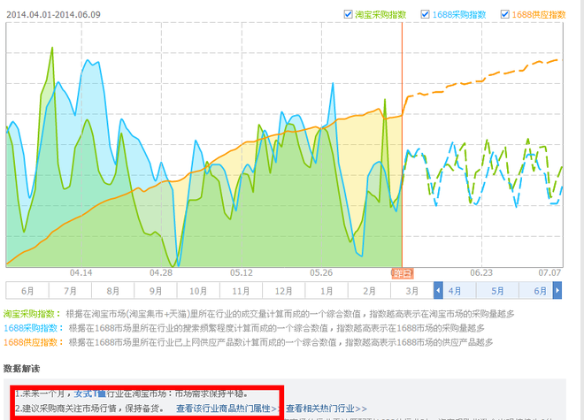 現(xiàn)階段,比如我準(zhǔn)備推女式t恤,那么就需要我們先看看大盤是個(gè)什么情況,選擇還在熱銷中的寶貝去推,不能盲目投放。這個(gè)簡(jiǎn)單,通過兩方面來看:淘寶指數(shù)和阿里指數(shù)  通過這些數(shù)據(jù)來看,整體行情還是可以的,市場(chǎng)行情基本處于平穩(wěn)的狀態(tài),還處于可推廣得范圍。