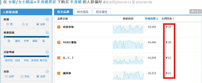 ?、弁ㄟ^淘寶搜索頁面的銷量排名去看,現(xiàn)階段寶貝銷量最多的價(jià)位如何。 ?、芩阉仨撁嬷袃r(jià)格區(qū)間的顯示,這個(gè)太精準(zhǔn),顯示的范圍相對(duì)來說比較大,基本上包含的是淘寶和天貓主要的成交區(qū)間。一般淘寶的成交價(jià)格相對(duì)低一些,而天貓相對(duì)的品牌性,客單相對(duì)過高。  通過這幾步的分析寶貝的定價(jià),基本不是問題了。如果寶貝自身的品質(zhì)就相對(duì)高端,那你就走高端路線。我的意思,大眾需要什么,你給他什么。產(chǎn)品定價(jià)不是一味低價(jià)或者一味暴利,這種極端的做法不可取。一定要根據(jù)自身類目的市場(chǎng)情況來定價(jià),在保證利潤的前提下盡量貼近市場(chǎng)價(jià)格,我們的營業(yè)額在于產(chǎn)品的受眾群體,所以要去迎合不是所有人,至少是大部分人。
