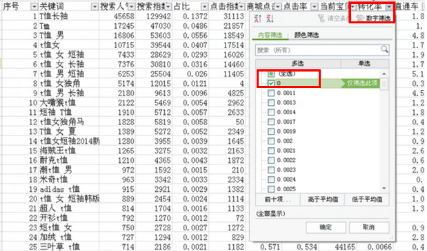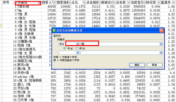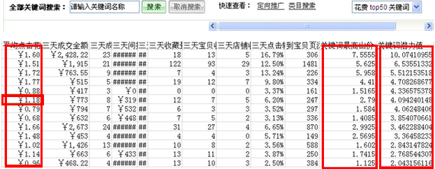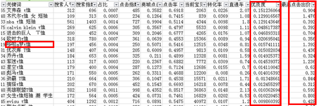 我們考慮直通車關(guān)鍵詞不虧本的情況下要做到:總毛利潤(轉(zhuǎn)化率點(diǎn)擊量商品單品毛利)總推廣費(fèi)用(PPC點(diǎn)擊量);從而得到:PPC轉(zhuǎn)化率單品毛毛利,直通車關(guān)鍵詞才不會(huì)虧錢。通過①②兩個(gè)公式篩選女裝t恤的關(guān)鍵詞:  首先我們選出一批關(guān)鍵詞,先剔除沒用的0轉(zhuǎn)化的關(guān)鍵詞,篩掉一部分詞。  刪除不相關(guān)的關(guān)鍵詞,選詞更精準(zhǔn)  然后用之前的①②公式,將關(guān)鍵詞進(jìn)行排序,篩選出優(yōu)質(zhì)度高,點(diǎn)擊扣費(fèi)接近關(guān)鍵詞最高點(diǎn)擊出價(jià)的詞。為什么這么說呢,優(yōu)質(zhì)度高那么說競(jìng)爭(zhēng)小,接近關(guān)鍵詞最高出價(jià)說明有利于我們優(yōu)化。