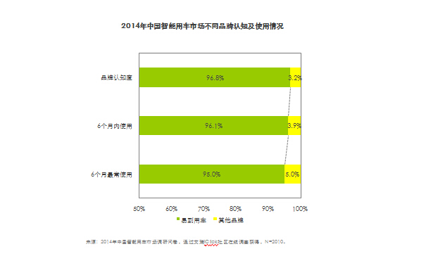 艾瑞數(shù)據(jù)顯示:2014年1月到5月,核心智能用車企業(yè)易到用車人均月均使用次數(shù)31.0次,典型租車企業(yè)中,神州租車人均月均使用次數(shù)5.8次,打車軟件中滴滴打車人均月均使用次數(shù)9.8次。在使用時(shí)間保持一天以上的情況下,易到用車使用頻次最高。