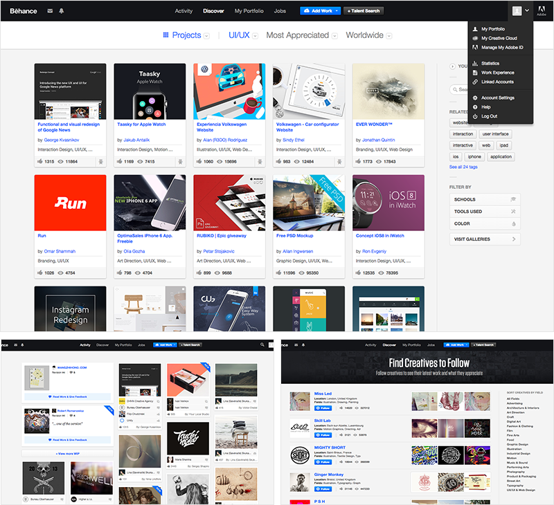 黑色突出網(wǎng)站導(dǎo)航和內(nèi)容模塊的區(qū)分,品牌藍(lán)色主要用于可點(diǎn)擊的操作控件,包括用戶名稱、內(nèi)容標(biāo)題。相較于大片使用品牌色的手法,更能突出內(nèi)容和信息,適合以內(nèi)容為王的通用化、平臺(tái)類站點(diǎn)。