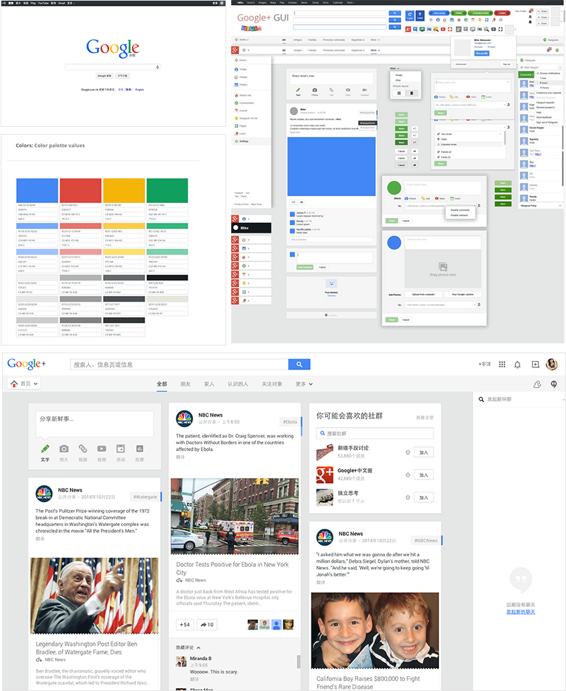 對(duì)于具有豐富產(chǎn)品線的谷歌來(lái)說(shuō),通過(guò)4種品牌色按照一定的純度比,再用無(wú)色彩黑白灰能搭配出千變?nèi)f化的配色方案,讓品牌極具統(tǒng)一感。在大部分頁(yè)面,藍(lán)色會(huì)充當(dāng)主導(dǎo)色,其他3色作輔色并設(shè)定不同的任務(wù)屬性,黑白灰多作為輔助色,對(duì)于平臺(tái)類站點(diǎn)來(lái)說(shuō),多色主導(dǎo)有非常好的延展性。