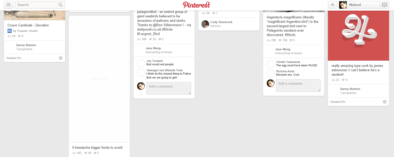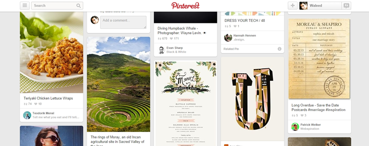 Google+和Pinterest的主導航欄會固定在頁面頂部,這樣用戶就能在有需要時快速使用菜單項和篩選器。如果再配合上無限制滾動模式,跟隨式導航菜單可以在用戶滾動幅度超過一個頁面時帶來極大的方便。