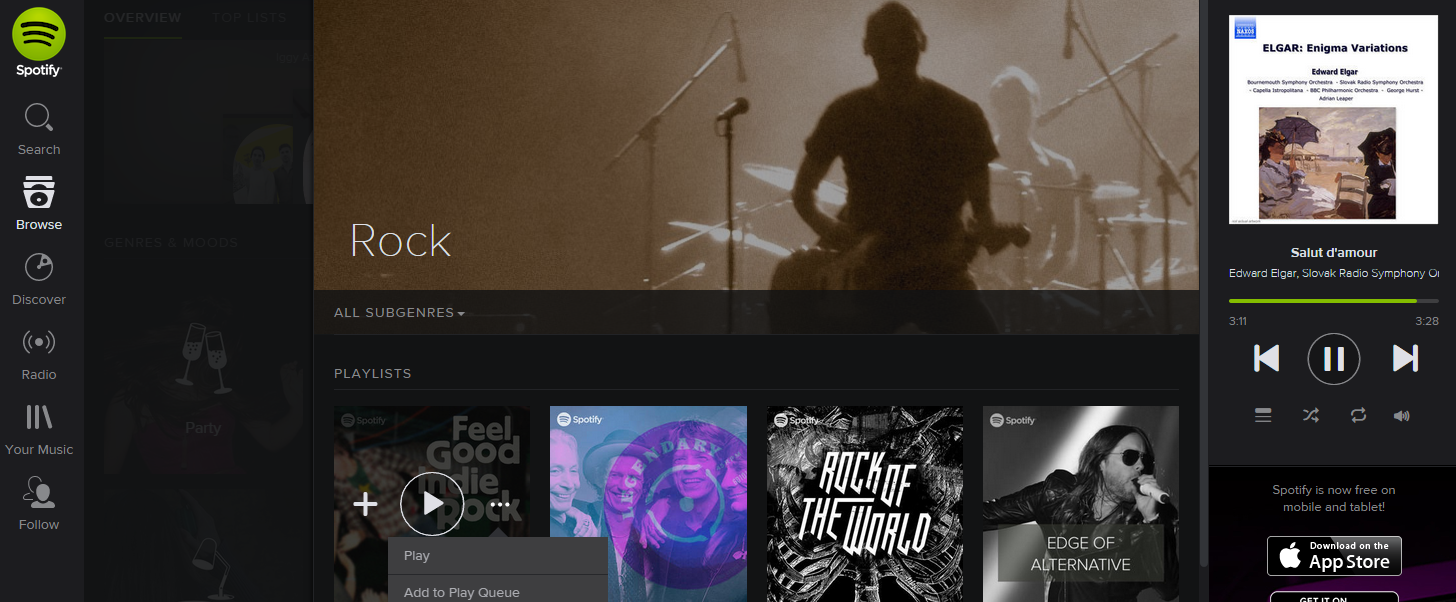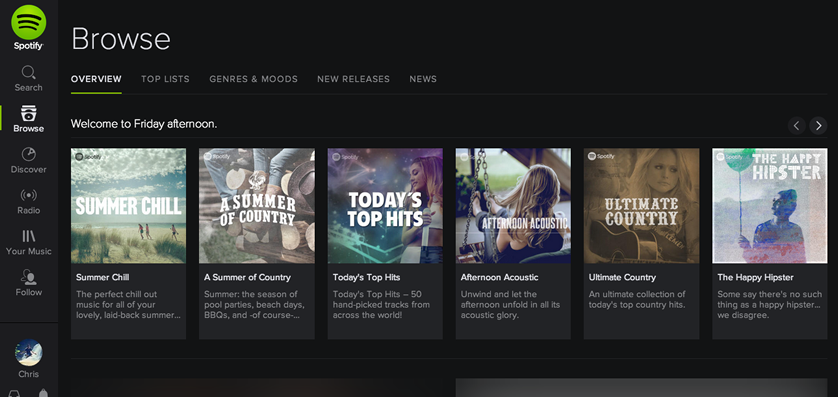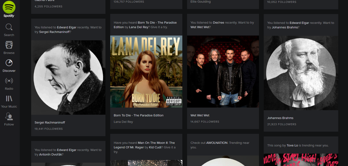 對于Spotify等web應用,考慮到用戶有時會在背景播放音樂的同時瀏覽其他音樂,這時單頁應用模式的重要性就愈發(fā)凸顯,通過使用單頁應用,用戶就無需對頁面進行重新加載,也不會造成音樂停止播放。