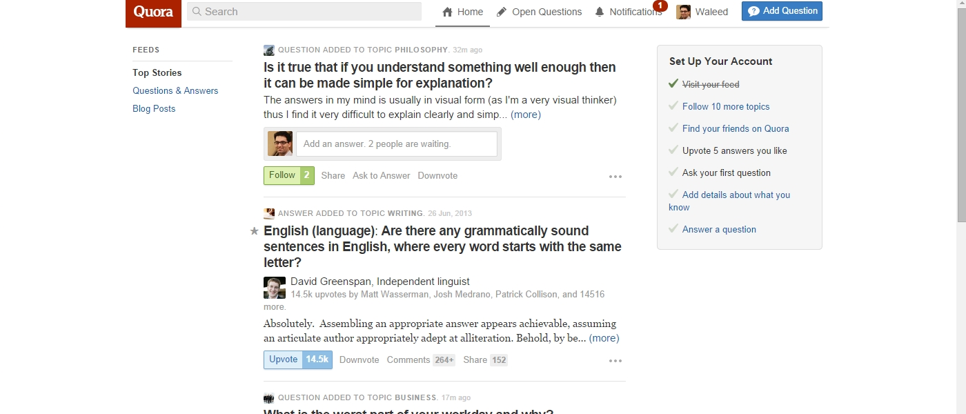 解決方案:為用戶提供一份明確的后續(xù)步驟清單以便他們相應執(zhí)行,進而獲得更深入的體驗。舉例來說,在填寫個人資料時,Quora會為用戶創(chuàng)建一份“操作步驟表”以便他們對照操作。LinkedIn則會將所有可以讓用戶添加到個人資料里的部分以列表形式展現(xiàn)出來,同時還提供一個完整度標尺來激勵用戶繼續(xù)填寫。