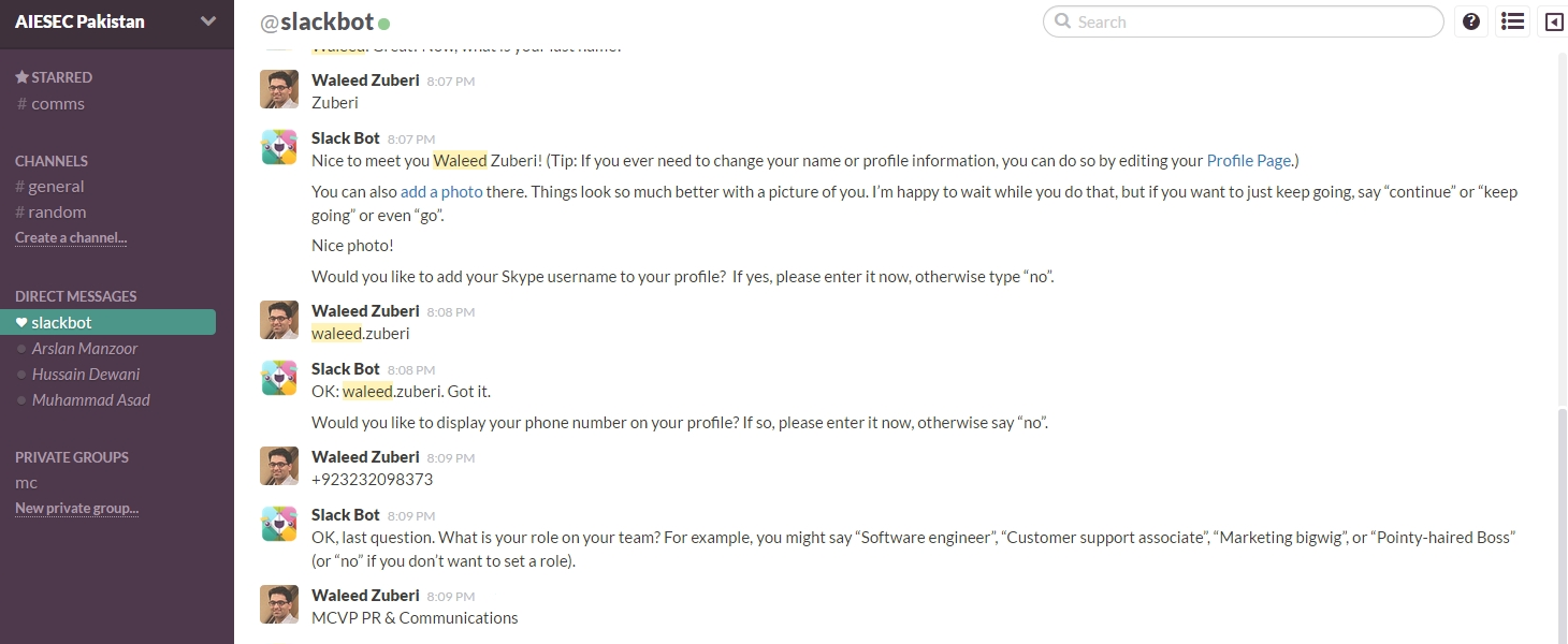 Slack等web應用采用了重疊式指南的方法,使用“指導標記”凸顯UI中的重要部分進而說明其功能。另外,Slack還使用了聊天機器人的方法幫助用戶創(chuàng)建個人檔案??紤]到Slack是一款聊天應用,這一方法合情合理,另外,“Slackbot”還會帶領用戶填寫手機號碼等個人資料信息并以對話的形式顯示用戶名。