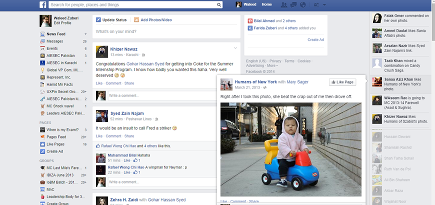 這些內(nèi)容推薦可以以“流行主題”或“最新發(fā)布”等形式出現(xiàn)。Facebook的做法是根據(jù)用戶與時間軸上的帖子的交互記錄提供“相關(guān)”頁面,另外還會提供一個更具專有性的推薦欄以便用戶發(fā)現(xiàn)新頁面和新關(guān)注對象。對于用戶來說,這樣的內(nèi)容流可以無窮無盡,特別是在充滿用戶生成內(nèi)容的社交網(wǎng)絡應用上。正如Web UI設計模式2014中所討論,在UI中提供一個完善的推薦引擎是幫助用戶發(fā)現(xiàn)新內(nèi)容的絕佳方式。