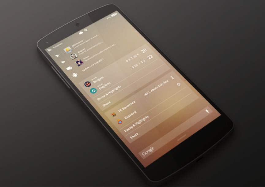 通知面板的設(shè)計巧妙地利用了溫暖的色彩,以使界面充滿更加積極的外觀。像上面的案例一樣,設(shè)計師也運用了低透明的模糊背景和優(yōu)雅的小部件和諧共生。