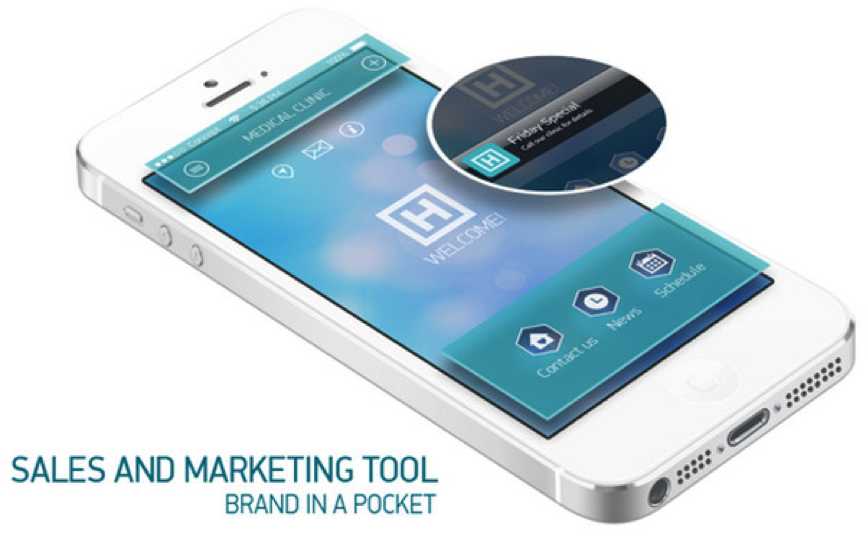 下面是一個醫(yī)療應(yīng)用,大面積藍色模糊背景中,運用了很好的背景虛化效果,以配合時尚的綠松石色的功能面板。