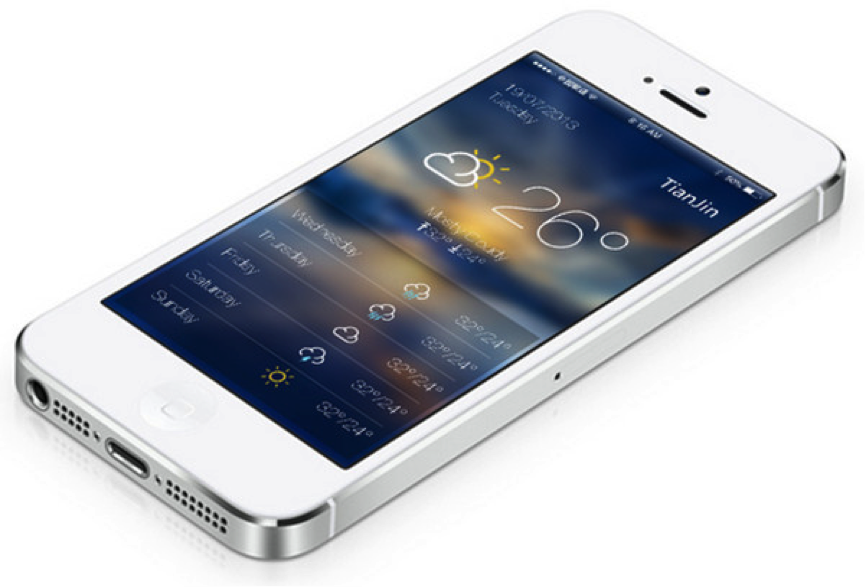 下圖是iOS 7天氣應(yīng)用 – 底下地圖像立刻給天氣變化帶來實時感,提供了一個相當(dāng)有價值的信息界面。輕微模糊的天氣場景增加了一種自然設(shè)計理念。