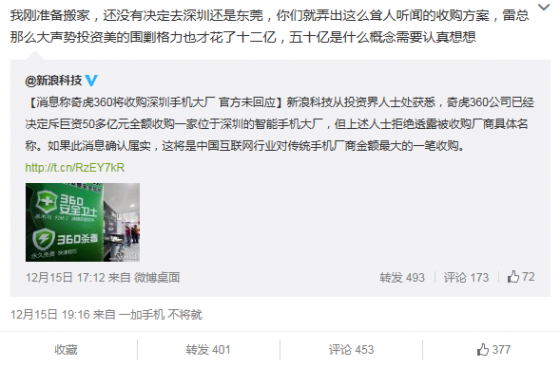 今日有消息稱,360將和酷派旗下獨(dú)立電商網(wǎng)品牌大神將宣布合作,并表示,今日酷派已經(jīng)停牌,這很可能與360的合作有關(guān)系。對此大神總裁祝芳浩回應(yīng)稱,“并沒有聽說此事,有可能是外界炒作”。而對于360公司決定斥巨資50多億元全額收購一家位于深圳的智能手機(jī)大廠的消息,15日晚上,360董事長周鴻祎在微博上對此事進(jìn)行了回應(yīng),默認(rèn)了360將再戰(zhàn)手機(jī)市場的一事,但他表示,還沒決定從深圳還是東莞開始,并且將其稱之為聳人聽聞的收購方案。