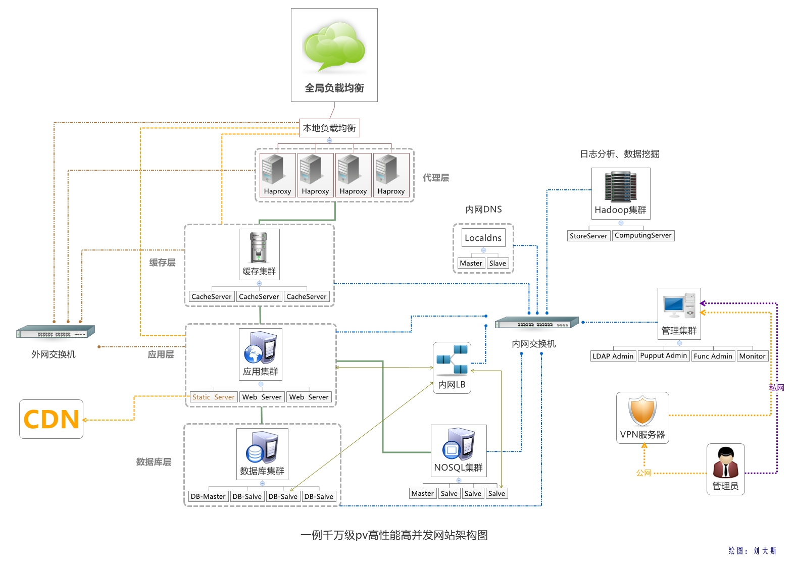 一個(gè)支撐千萬級PV的網(wǎng)站是非??简?yàn)一個(gè)架構(gòu)是否成熟、健壯(本文不涉及軟件架構(gòu)的層面,有興趣也可以討論)?,F(xiàn)拋出一個(gè)系統(tǒng)層面的架構(gòu),不保證是最優(yōu)的方案,但也許適合你。理由是再優(yōu)秀的架構(gòu)都不具備通用性,需要根據(jù)每種應(yīng)用特點(diǎn)針對性來設(shè)計(jì)。