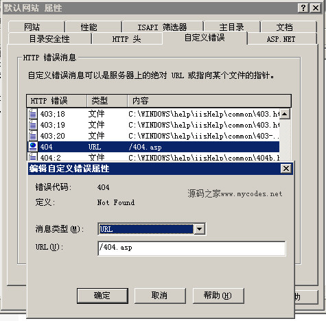 打開IIS管理器-->點擊要設置自定義404網點的屬性-->點擊自定義錯誤選項-->選中404頁-->選中并打開編輯屬性-->設置成 URL --> URL 里填寫“/404.asp”(不包含“”) -->按確定保存退出再把事先做好的 404.asp 這個頁面用ftp上傳到網站根目錄下。