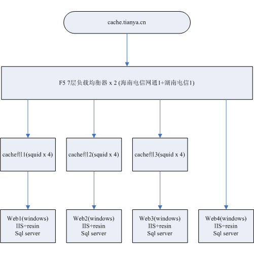 然后cache下來就是web主機了,天涯用的是非常流行的windows 2000和Microsoft IIS 5,主機數(shù)量根據(jù)cache組計應該會有3 臺。會不會闊綽的用到3 臺sql server不得而知,數(shù)據(jù)庫裝在web服務器上的可能性比較高。另外有些板塊是不走cache服務器的,那些也會用到機器,這些機器是不是重復利用的,以后有空再慢慢統(tǒng)計。另外天涯還有兩個項目,一下還想不起名字,那兩個是google提供的完整方案。