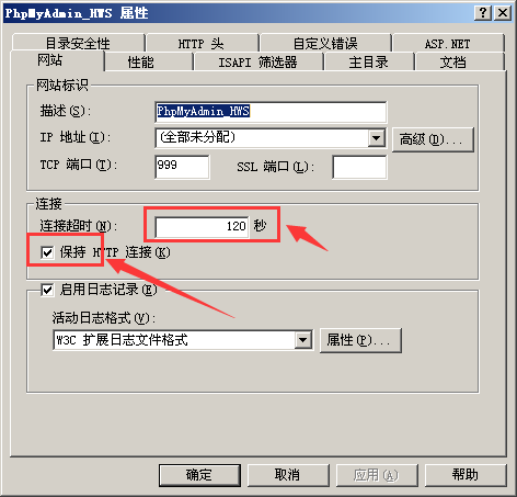在“網(wǎng)站”選項(xiàng)卡的“連接”部分,清除“保持 HTTP 連接”復(fù)選框。